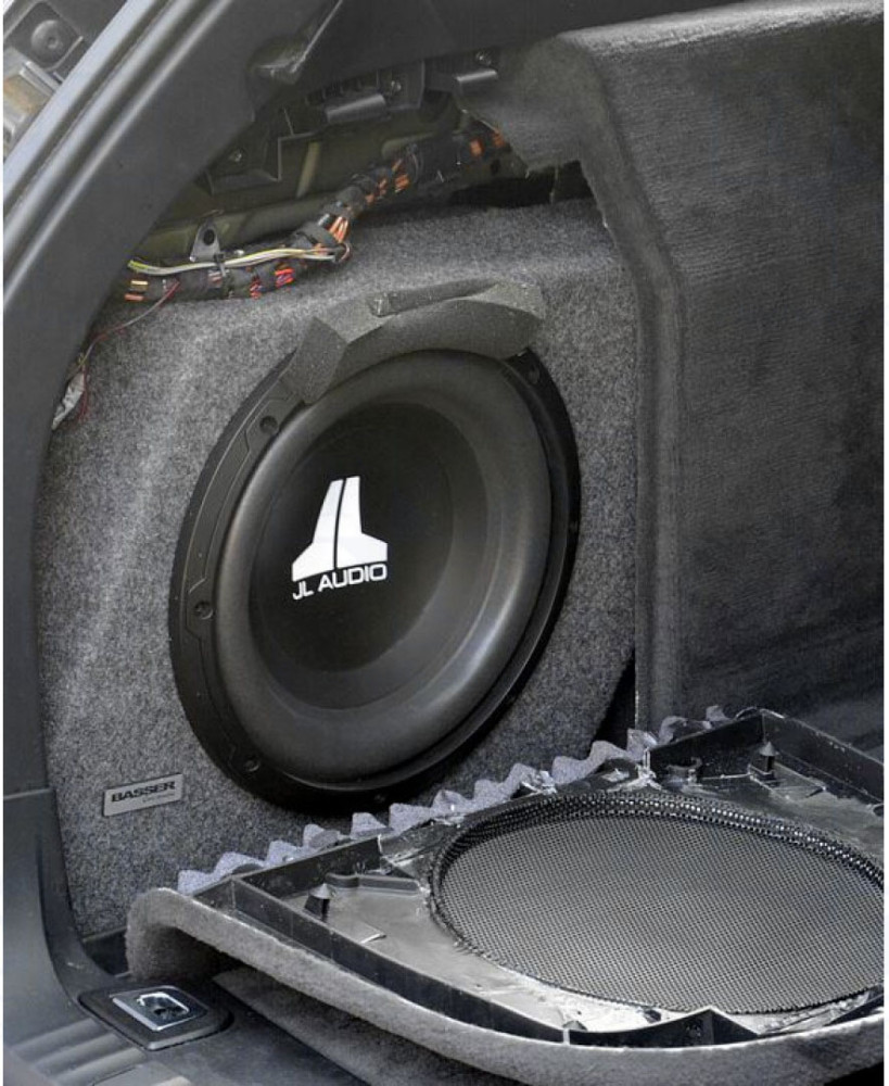 BMW 5, E61 Touring (2003-2010), 25cm 15l, üres, bal kerékjárati ív helyére. Szürke szövet kárpitozás, MDF láda anyag. Csatlakozóval szerelve, vezeték nélkül.