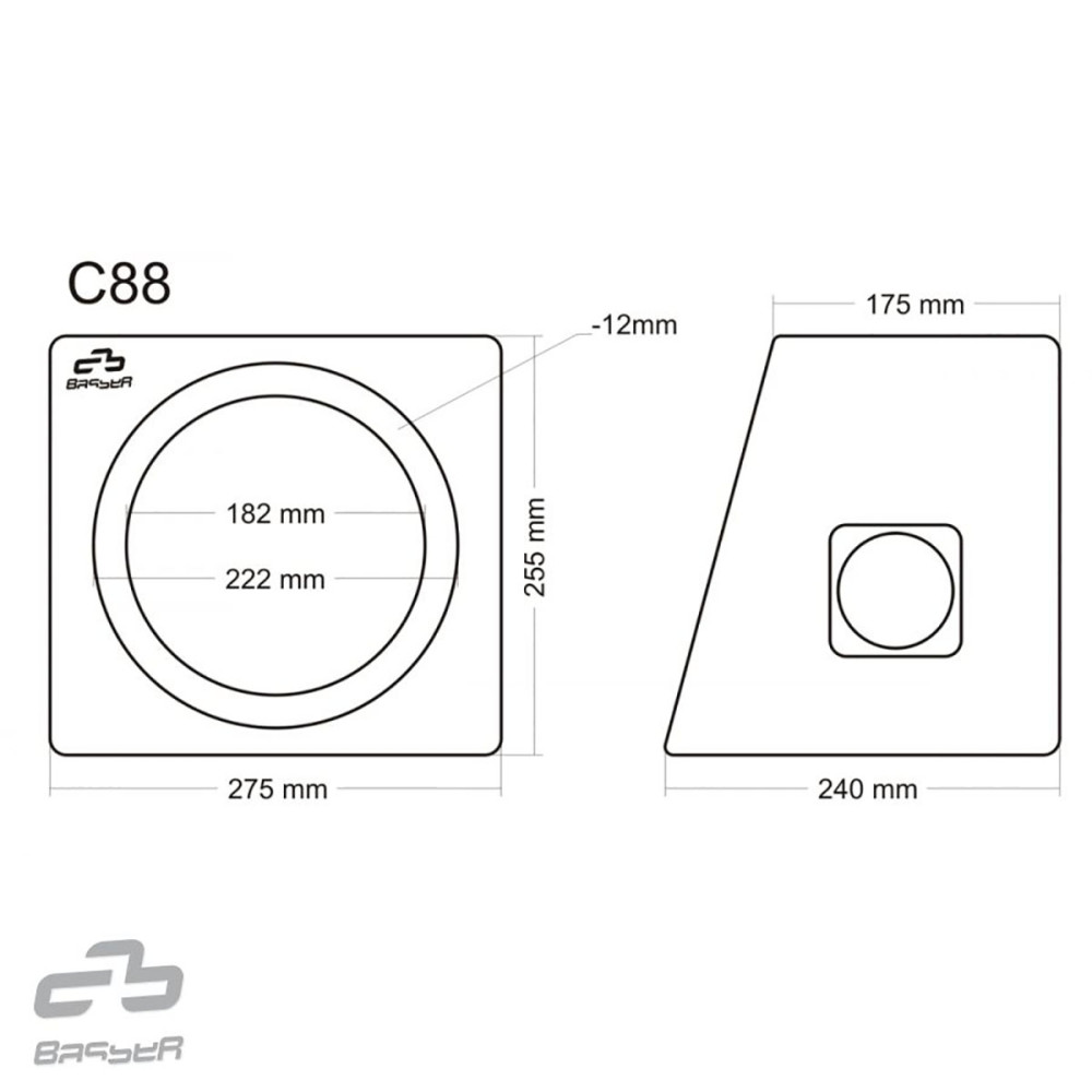 Basser C88 20cm 8l, üres, zárt mélyláda doboz. Fekete szövet kárpitozás, MDF láda anyag. Csatlakozóval szerelve, vezeték nélkül.