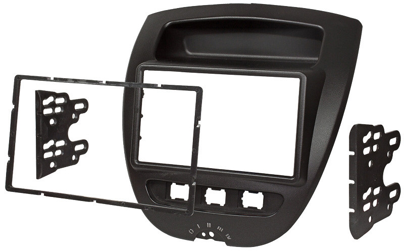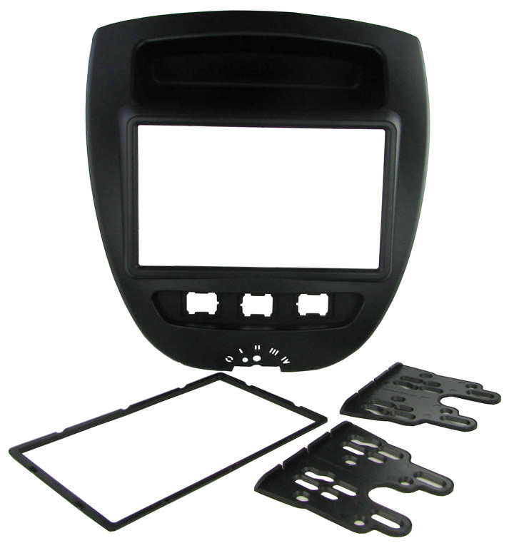 Citroen C1 2 DIN autórádió beépítő keret. A beépítő keret átalakítja a gyári rádió, műszerfal kialakítását úgy, hogy lehetővé tegye a gyári rádió cseréjét univerzális szabvány 2 DIN méretű fejegységre. Kiváló minőségű angol Connects2 gyártmány.
