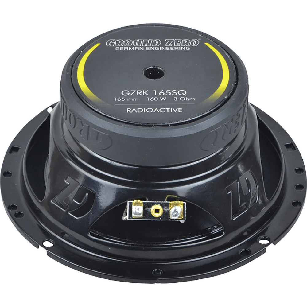 Ground Zero GZRK 165SQ 16,5cm átmérőjű középsugárzó, kick hangszóró, 110W folyamatos terhelhetőségű. Radioactive sorozat: 3Ω tekercs, Fekete eloxált alumínium kónusz, dinamikus, pontos hangzás, acél kosár, Klippel optimalizált.