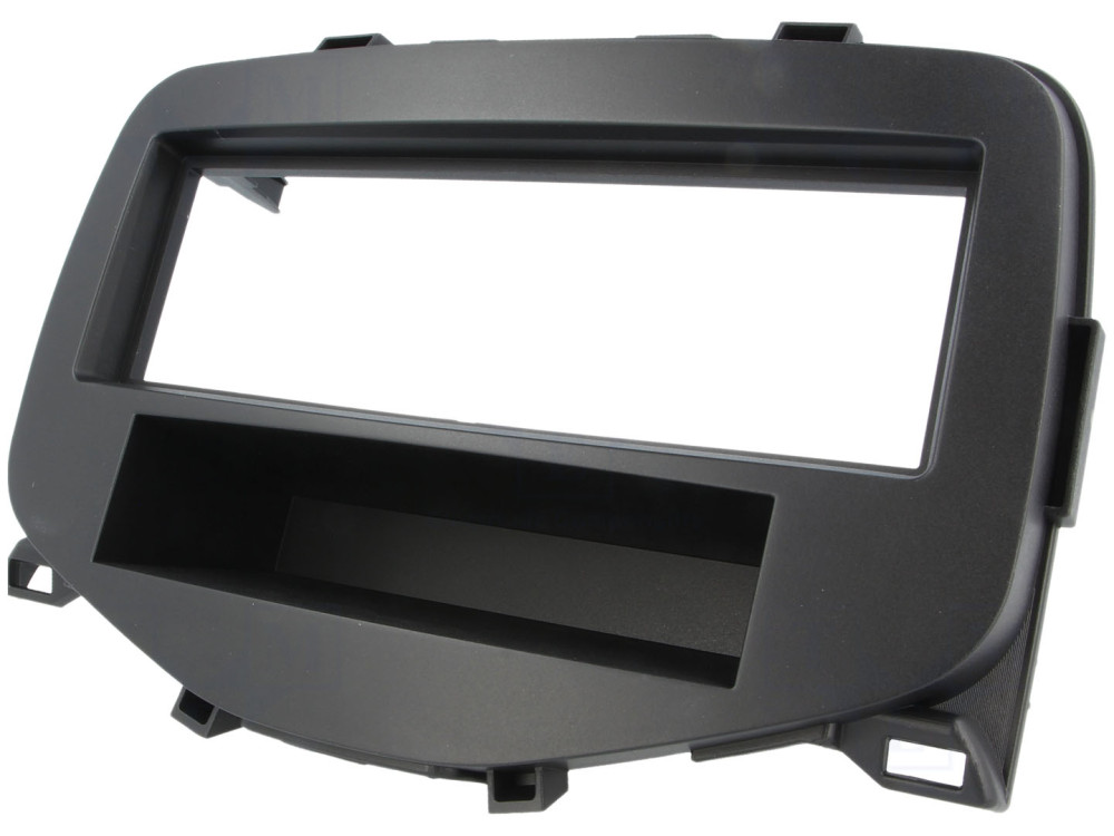 Toyota Aygo (2014-) 1 DIN autórádió beépítő keret. A beépítő keret átalakítja a gyári rádió, műszerfal kialakítását úgy, hogy lehetővé tegye a gyári rádió cseréjét univerzális szabvány 1 DIN méretű fejegységre.